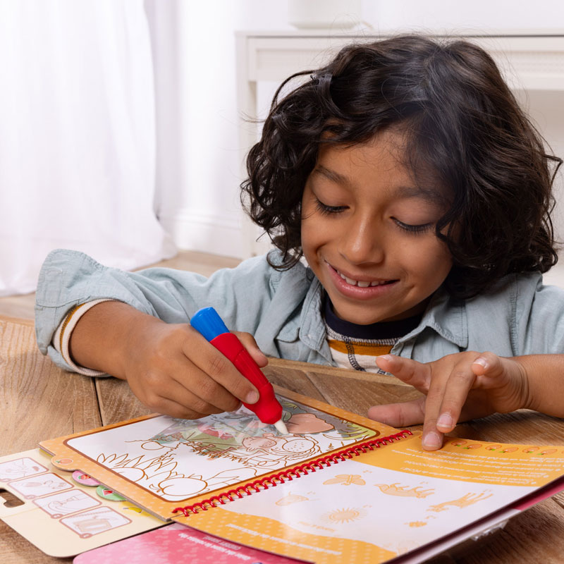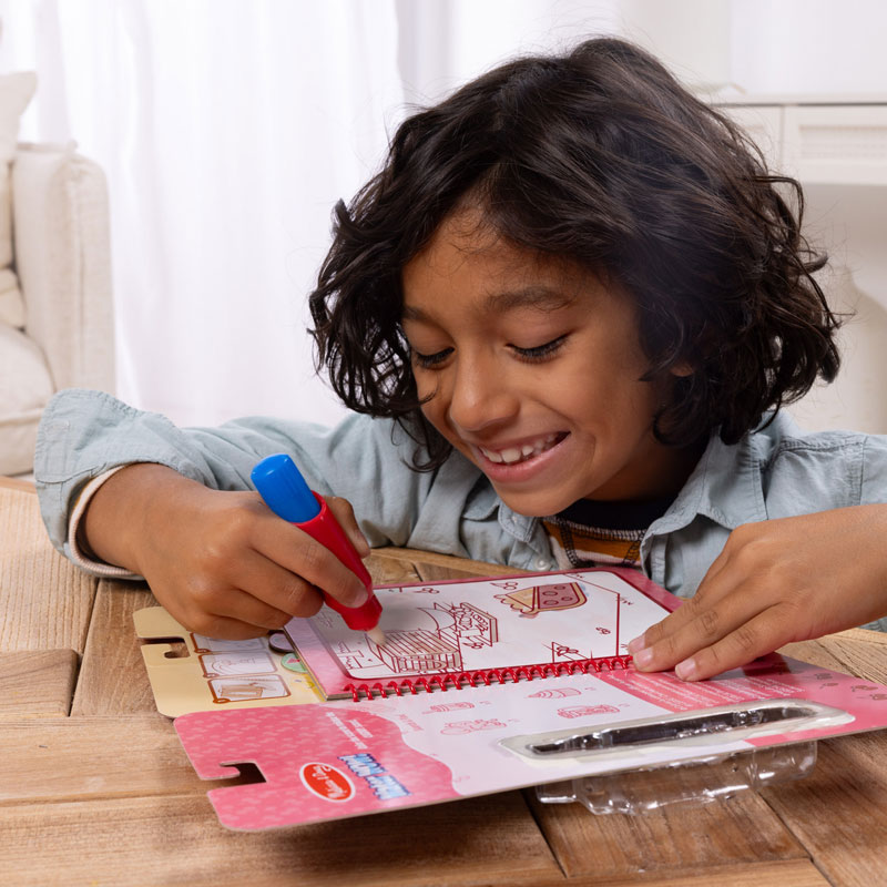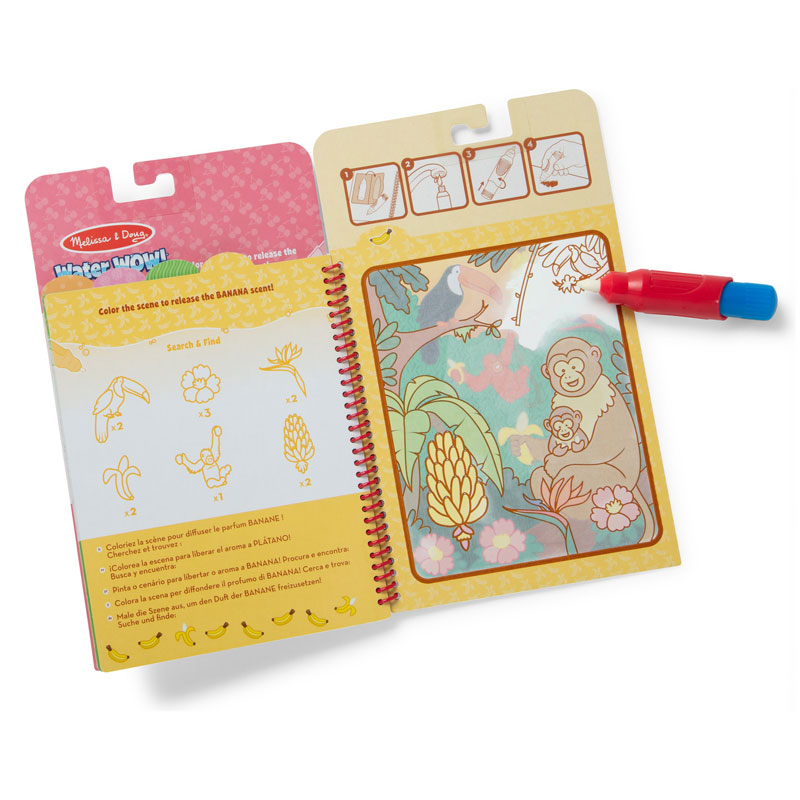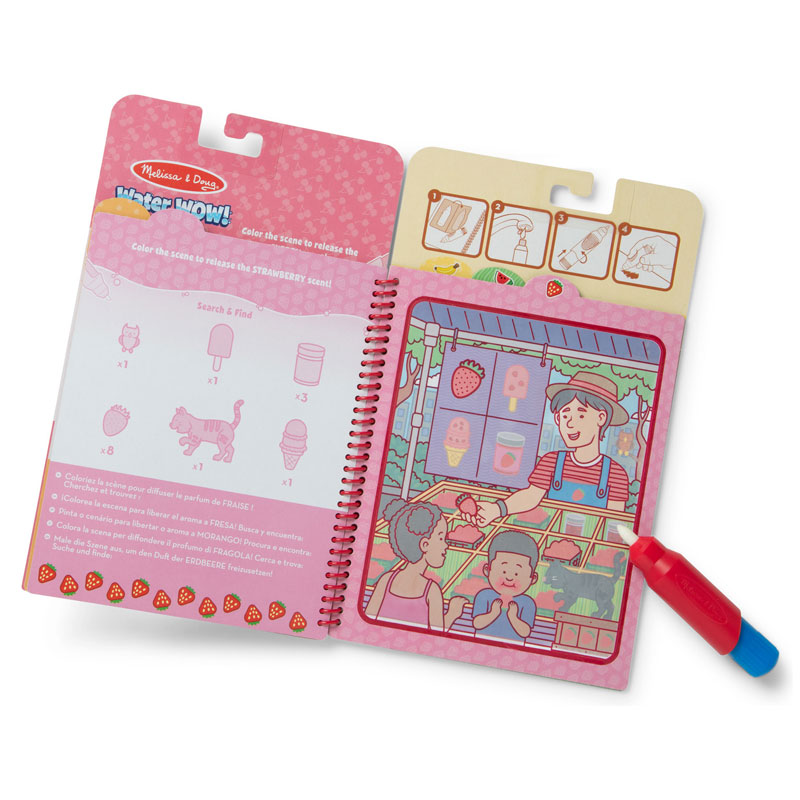 Make early learning sweet and mess-free with the Melissa & Doug On the Go Water Wow! Fruit Scented Activity Pad. This reusable scented paint-with-water book features 5 spiral-bound pages and a refillable, no-leak water pen that reveals vibrant colors, fruity scents, and fun surprises with every stroke—then dries to “erase” for endless repeat play. This fruit-themed pad includes five scented scenes to color (featuring watermelon, peach, cherry, banana, and strawberry) and search-and-find activities for each one. It’s a screen-free way to build fine motor skills and spark sensory exploration—at home or on the go. Perfectly sized for little hands, the chunky water pen stores in the cover, making this a parent-approved travel toy for car rides, airplanes, waiting rooms, and quiet-time play. Whether you’re celebrating a birthday, holiday, back-to-school season, preschool milestone, or gearing up for travel, this screen-free, hands-on activity makes a thoughtful gift for kids ages 3 to 7. Compact enough to fit in backpacks and carry-ons, it’s a fun and educational way to keep little ones engaged on the go. Pair it with a Melissa & Doug Reusable Sticker Pad for even more creative learning wherever you are.